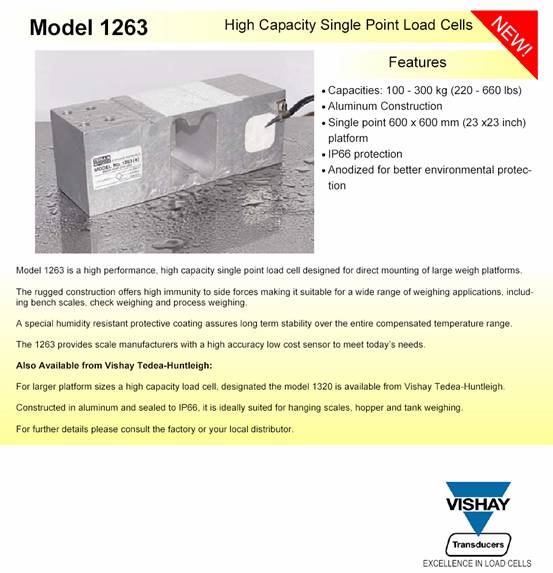 专门的潮气防护保证了在温度补偿范围下的长期稳定性。适用现在的需求,1263为秤厂提供高精度低成本的传感器。